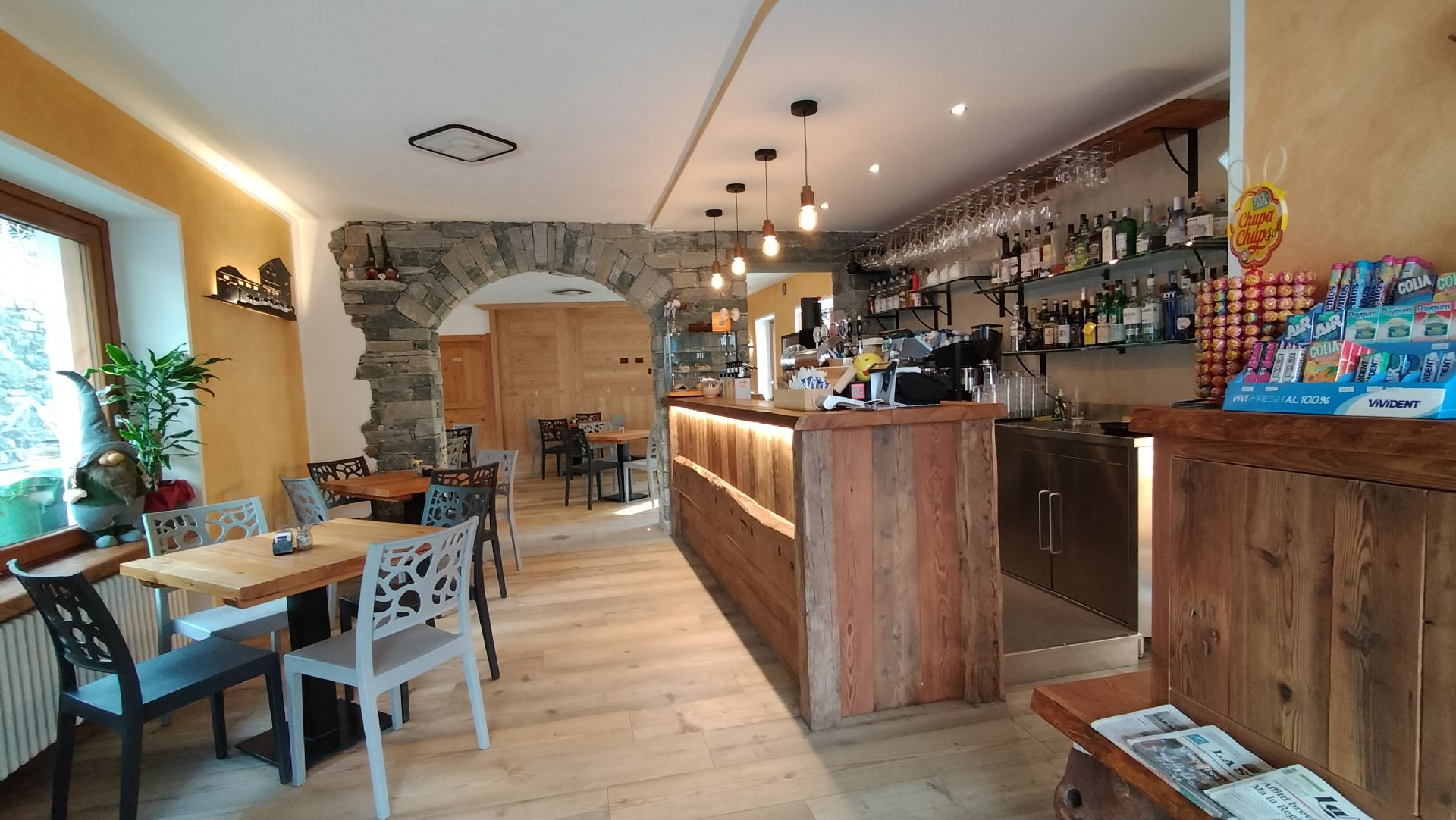 Lo stile moderno e la tradizione si coniugano in questo locale con vista sul bellissimo ponte storico e l'adiacente Chiesa parrocchiale di Sant'Antonio Abate.