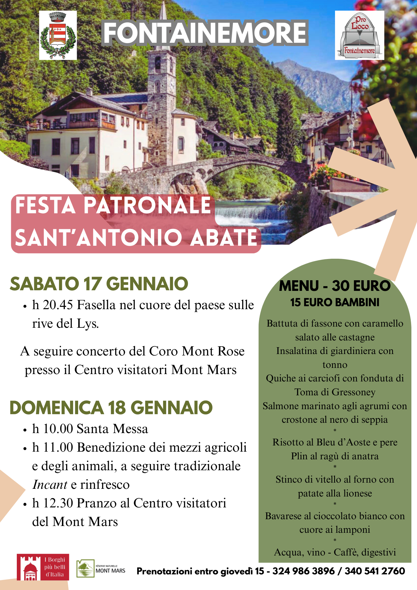 - ore 11.00 Benedizione dei mezzi agricoli e animali sul piazzale Saint-Roch, a seguire tradizionale Incant e rinfresco
