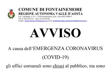 Si avvisano gli utenti che gli Uffici Comunali sono operativi ma il servizio di apertura al pubblico è garantito solo previo appuntamento telefonico al n. 0125/832121.