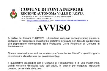 Si comunica che è prossima una nuova fornitura di mascherine lavabili acquistate direttamente dal Comune di Fontainemore che verranno distribuite alla popolazione...