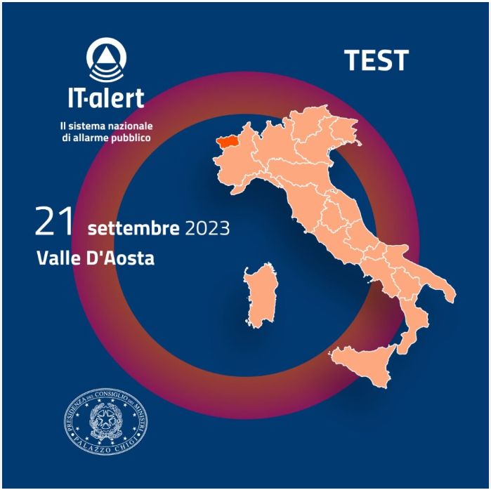In Valle d’Aosta il sistema sarà testato giovedì 21 settembre 2023 alle ore 12.00.