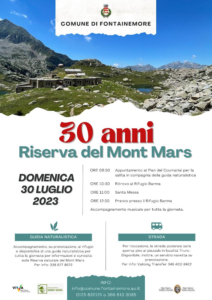 Il 30 luglio 2023, al rifugio della Barma, nella splendida cornice delle Alpi Pennine, si terrà la celebrazione per i primi 30 anni dall'istituzione della Riserva Naturale del Mont Mars.